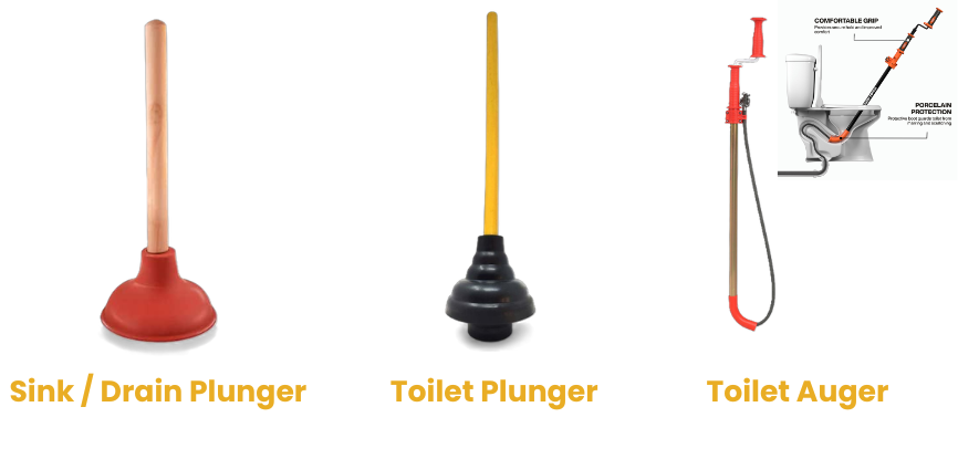 Use a toilet plunger, not a sink plunger. A toilet plunger has an extended rubber lip that folds out from the bottom to fit the toilet drain opening. A sink plunger is flat on the bottom and is designed for flat drains like sinks and tubs. It can't get a seal on the curved toilet drain, so it won't generate real pressure. Using the wrong type makes the job much harder than it needs to be.